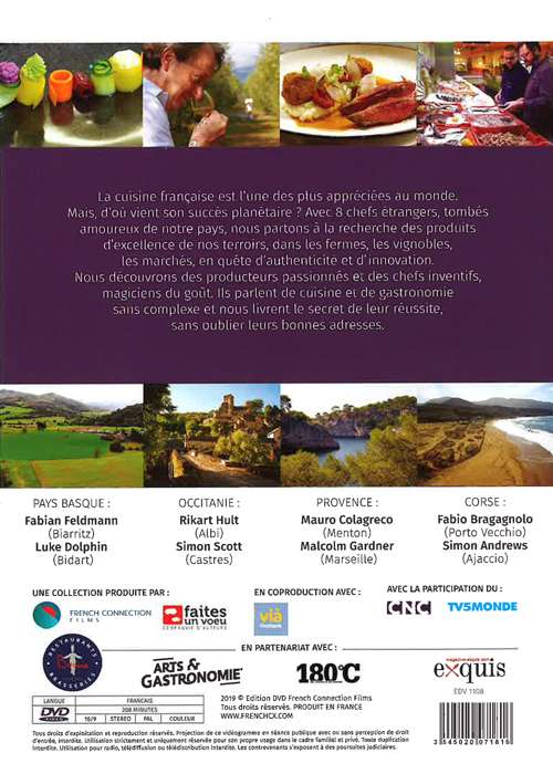 21 chefs étrangers jouent les virtuoses avec les produits du terroir français ! La cuisine française est l'une des plus riche et appréciée au monde. Mais d'où viennent son succès planétaire et sa réputation de diversité ? A l'aide de 21 chefs étrangers, tombés amoureux de notre pays et de ses produits d'excellence, nous partons à la découverte des secrets de nos terroirs et de l'histoire de notre gastronomie, dans dix régions françaises. En toute simplicité, nous suivons les chefs dans les fermes, les vignobles et sur les marchés, dans leur quête du produit authentique ou nouveau. Nous découvrons leurs idées nouvelles en cuisine, leur inventivité et leur touche personnelle, notamment lorsqu'ils revisitent certains incontournables de notre patrimoine culinaire. Ces chefs étrangers nous racontent leur passion pour notre pays, sa cuisine et ses saveurs uniques. Ils parlent de gastronomie française sans complexe, la rendant facile à comprendre et tellement créative. Enfin nous partageons une dégustation de leurs plats les plus réussis en compagnie d'un critique culinaire, de leurs fournisseurs ou de leurs convives.